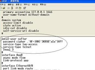 第四步:進入到管理界面后通過local-user命令修改相應帳戶的密碼即可實現密碼恢復目的,將原來不能登錄帳戶的密碼重置。(如圖4)