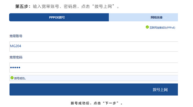 第五步:輸入寬帶賬號、密碼,點(diǎn)擊撥號上網(wǎng)。