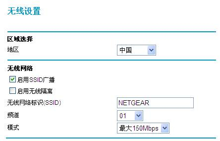 【注意】無(wú)線網(wǎng)絡(luò)標(biāo)識(shí)默認(rèn)NETGEAR,也可以用數(shù)字字母任意命名,進(jìn)行中繼的兩個(gè)路由器,SSID可以相同,也可以不同。如果希望無(wú)線客戶端在兩個(gè)無(wú)線路由器的范圍內(nèi)實(shí)現(xiàn)漫游,請(qǐng)將SSID設(shè)為相同。