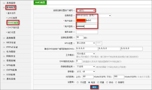 1)配置WAN1口連接寬帶:PPPOE撥號。