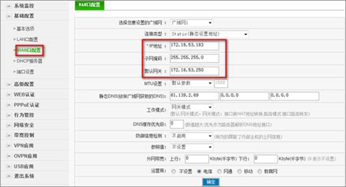 2、配靜態路由,確保三層交換下其他網段正常上網。