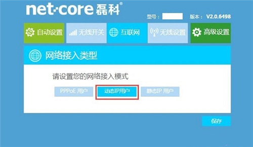 溫馨提示:磊科NW709路由器中的智能配置,“網絡接入類型”有時候會識別不準確,造成設置后無法上網的問題。所以,這里選擇“不需要”,然后手動設置磊科NW709路由器連接Internet。
