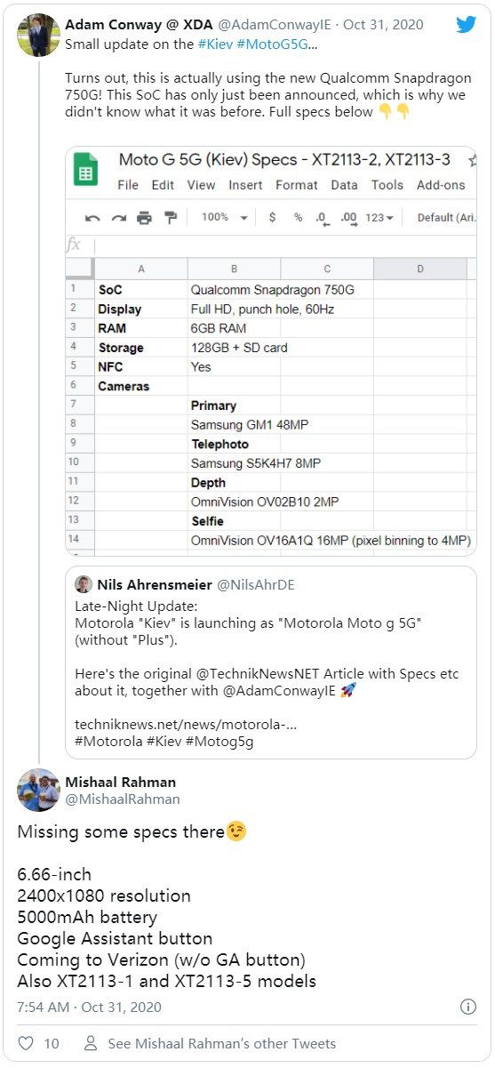 摩托羅拉MotoG 5G現身:搭載驍龍750G