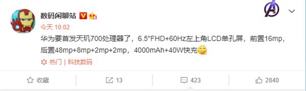 華為新機(jī)參數(shù)曝光 或?qū)⑹装l(fā)天璣700
