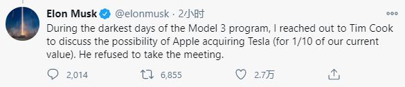 馬斯克:我曾想讓蘋果收購特斯拉 庫