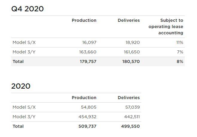 特斯拉:2020全年交付量近50萬輛 中
