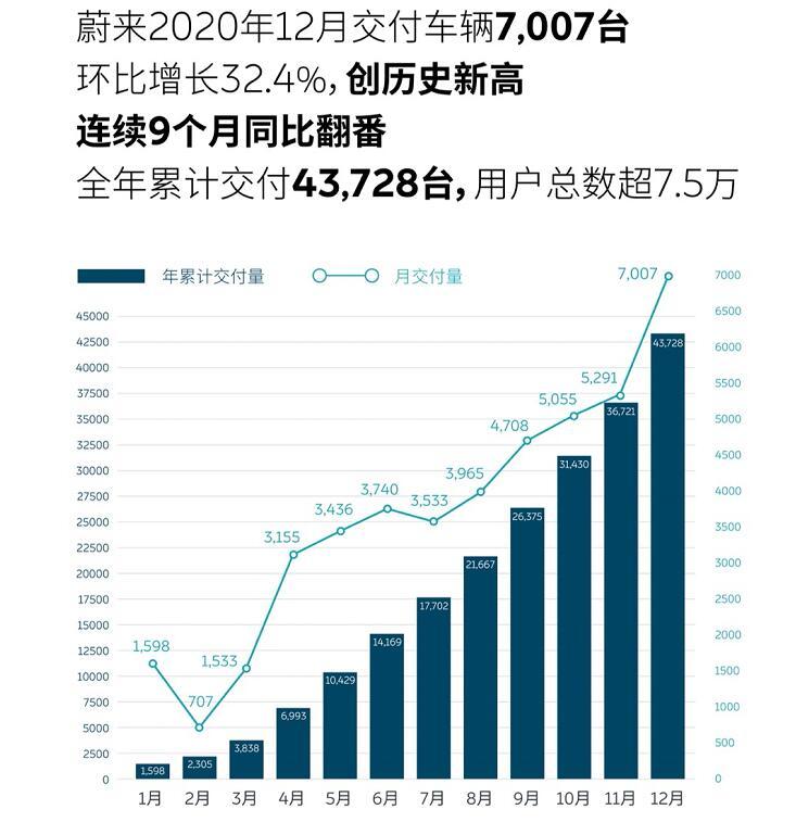 蔚來12月交付7007輛創歷史新高 全