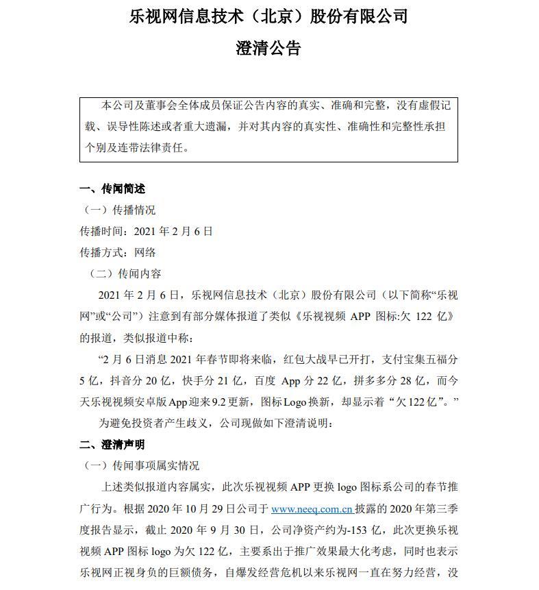 樂視網:APP“欠122億”出于推廣效果