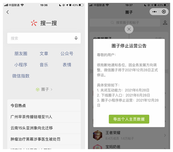 微信官方:微信圈子將停止運(yùn)營(yíng)