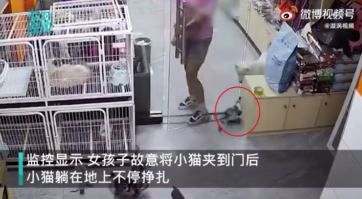 女孩在寵物店用玻璃門夾死貓咪,事后