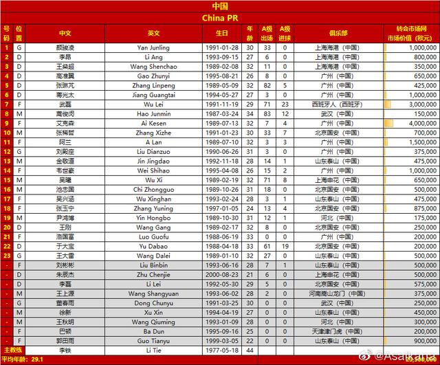 國(guó)足對(duì)陣澳大利亞大名單出爐:武磊、