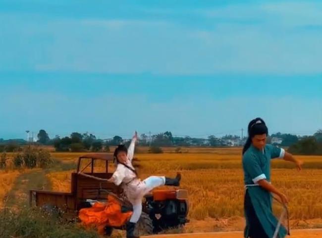 “夫妻裝扮成郭靖黃蓉收稻谷”視頻
