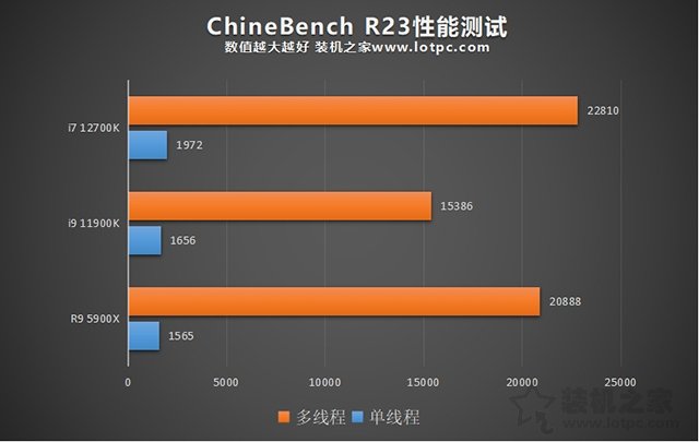 在CineBench R23測試中,i7 12700K相比i9-11900K在單核性能強了19%,多線程強了48%之多。而對比R9 5900X,i7-12700K單核性能強了26%,多線程性能領先9%。