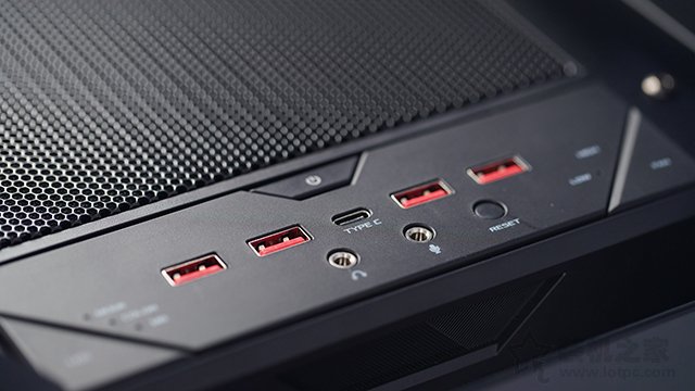 機箱前置接口擁有耳機麥克風,4個USB3.1,1個Type-C,電源開關及風扇轉速按鍵,還有一個RGB燈效按鍵。機箱支持ASUS AURA,可與主板進行燈效同步。散熱方面,機箱前部最大支持3把140mm風扇或420冷排,機箱背部支持140mm風扇或140冷排,機箱頂部支持3把120mm風扇或360冷排,機箱頂部設有厚棉提手。