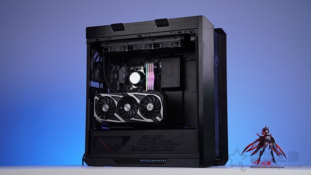 ROG STRIX“飛龍360”最吸引眼球的是水冷頭造型和RGB背光,旋轉式設計非常獨特,側面也有RGB燈條,在夜晚具有絢麗燈效。頂部ROG“敗家之眼”具有RGB幻彩燈效,支持1670萬色背光,預設6種燈效模式(靜態、呼吸、閃爍、彩虹、色彩循環、閃電沖刺),并支持華碩Aura Sync“神光同步”技術,可與華碩自家主板、顯卡和外設等背光同步,輕松營造絢麗燈效。