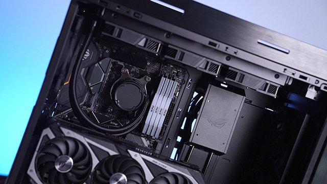 電源方面,我們同樣選擇的是華碩家的ROG STRIX 雷鷹850W,通過了80PLUS金牌認證的一款額定850W全模組電源,但達到了白金轉換效率水準,讓電源更高效節能,減少熱量損耗。搭載了ROG定制散熱模組,雙滾珠軸承軸流風扇的組合,不僅能夠提供更加強大且具有導向性的風量與風壓,強化散熱能力,還能起到防塵的效果,而且發熱也更低,更有利于保障主機穩定運行。