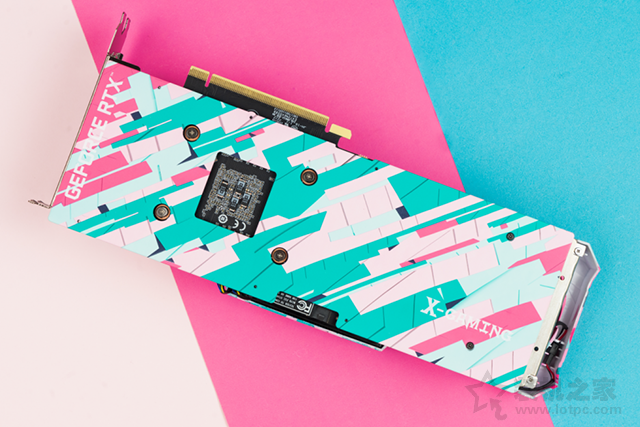 和之前我們評測的索泰RTX 3080 X-GAMING OC一樣,索泰RTX 3060Ti X-GAMING OC也采用了撞色外觀設計,在市售清一色電競風的N卡中顯得特別搶眼,被玩家稱為“顏色越粉,性能越狠”的“猛男卡”。索泰RTX 3060Ti X-GAMING OC采用家族式3風扇散熱方案,配備獨家盾鱗風扇,采用仿生鯊魚盾鱗結構,優化了扇葉弧度和傾斜角度,有效降低風阻和噪音,提供更高的風壓和風量,而且風扇也支持智能啟停技術,低負載時完全停轉保證低工作噪音。顯卡的合金背板也采用了和正面風扇罩一樣的撞色涂裝,不但起到了保護作用,同時也能進行輔助散熱。散熱器方面,它配備了自家的冰鏡導熱模組,做到散熱鰭片全面覆蓋顯卡,提供鏡面拋光的散熱底座,搭配3條冰脈復合熱管,提供出色的散熱能力。供電部分,索泰RTX 3060Ti X-GAMING OC配備了6+2相S.E.P供電和8Pin輔助供電接口,應付200W的整板功耗綽綽有余。接口方面,DP 1.4a×3+HDMI 2.1的組合也完全夠用,而且為玩家體驗8K/60Hz的游戲畫面提供了可能。個性化方面,索泰RTX 3060Ti X-GAMING OC提供了RGB LOGO燈,可以通過自家的Firestorm工具自由調節燈效,方便玩家打造酷炫的燈效主機。