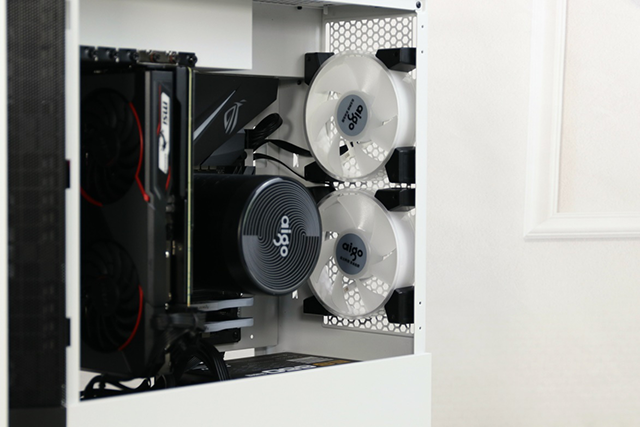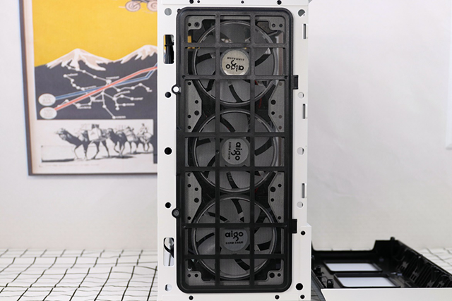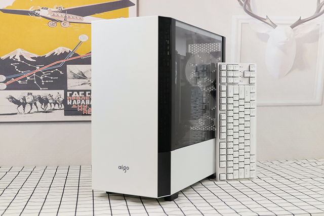 整體風格為小清新風格,但是又想要點與眾不同的效果。這次把原來的塑料感的機箱更換成這款AIGO 破曉X 。先來看下箱體的外觀,白色噴漆風格加上修飾的黑邊框架組合的清爽風格配色。