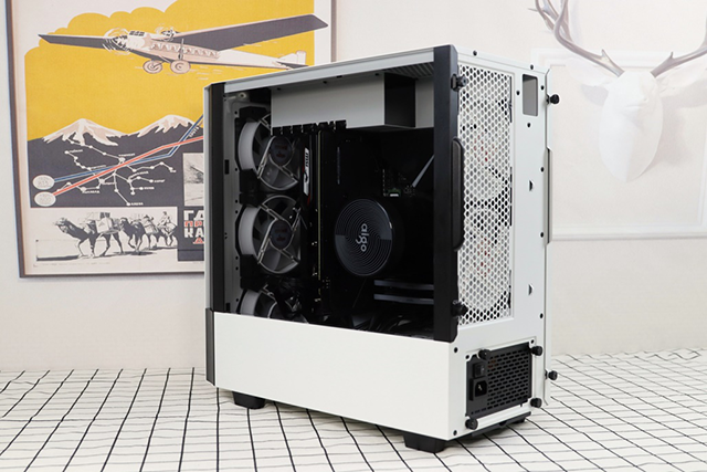 那么承接上面的疑問,可以放置5個12cm或前2x14cm+后2x12cm的風扇規格;水冷方面可以支持前280/360+后240的冷排組合,但前置的280/360只限定于分體或者顯卡水冷,因為一般的一體水冷由于受限于冷管的長度所以放置在前置是比較牽強,但是這樣的布局更適合安裝自帶一體水冷的顯卡安裝。機箱的散熱風道,這個對比于現在的主流箱體雖然都是采用前進后出的均風壓對流風道,但是架構上做出了調整讓風道更直接,并不受到過多的進出風道而改變,讓風道直進直出更為純粹了,這樣更有利于現在主流游戲機箱的“發熱大戶”顯卡的進風問題得到解決,畢竟現在的游戲更多的是依靠顯卡,處理器反而因為不需要滿載熱量并不大。。