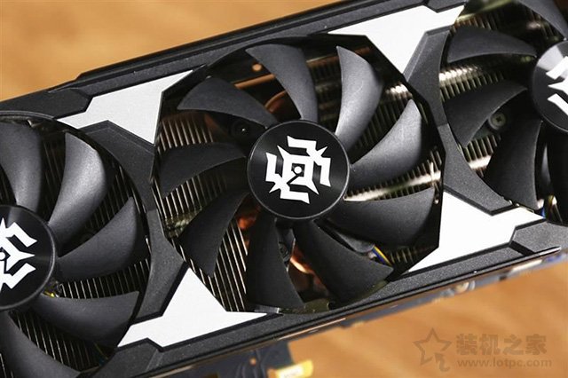 索泰GTX 1660 Ti X-GAMING OC采用三風扇設計,風扇上的LOGO也和上代一樣,風扇的直徑為90mm,在相同風壓的情況下,轉速比80mm風扇更低,因而噪音也更低。