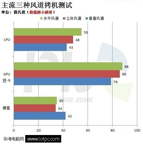 2.垂直風道散熱好:通過我們測試,垂直風道自然散熱效果確實占據優勢。由于這樣的機箱只有一個品牌具備相信熟知DIY的玩家一定了解,這樣機箱的硬盤位位于背板上,因此的到很好散熱效果,因此出硬盤溫度高之外,CPU、GPU的降溫效果,確實很好,并且優于其他結構設計機箱。