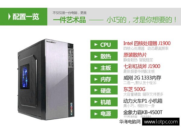 這套電腦主機的整體價格確實是低的讓人驚訝,電腦搭載的硬件也是很多用戶都不怎么了解的。配置中,Intel四核J1900處理器是直接內置在七彩虹J1900主板中的。這款Intel J1900是一款賽揚四核入門處理器,默認主頻僅2Ghz,擁有2M二級緩存,功耗僅10W,基于22nm工藝,是一款低功耗低端入門處理器,比較適合一般的辦公影音娛樂和喜歡玩休閑小游戲的用戶,無法滿足網絡游戲的需求。