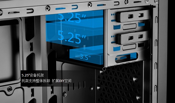外置供電3.5英寸在這里,頂部雙5.25英寸你可以轉(zhuǎn)接成3.5英寸的。