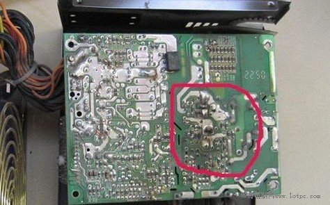 這是被爆炸燒毀的劣質電源電路板,比較容易發生短路,輕者平臺不穩定、死機、重啟等等,重者電源燒壞或者導致內部硬件燒壞。