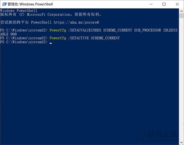 PowerCfg /SETACVALUEINDEX SCHEME_CURRENT SUB_PROCESSOR IDLEDISABLE 000