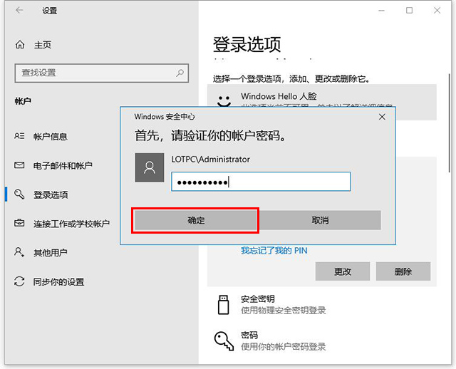 3、再驗證你的賬戶密碼,就可以刪除pin碼了。