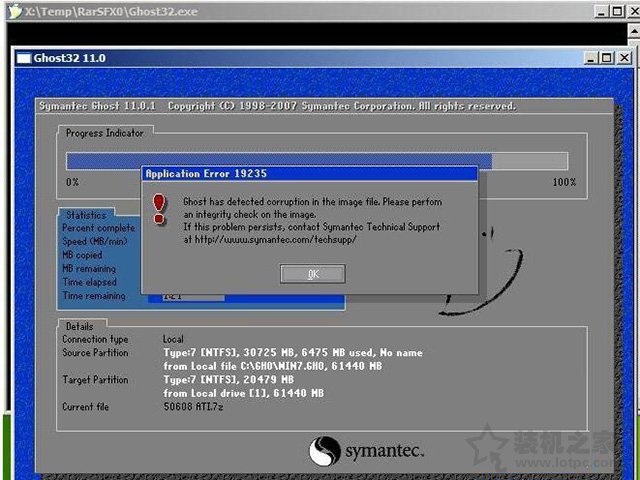 “Ghost has detected corruption in the image file.Please perform an integrity check on the image.”,出現該錯誤表示ghost軟件已經檢測到鏡像文件有損壞,請執行鏡像完整性檢查,也就是說GHO文件有問題,鏡像安裝文件損壞無法繼續執行安裝操作。