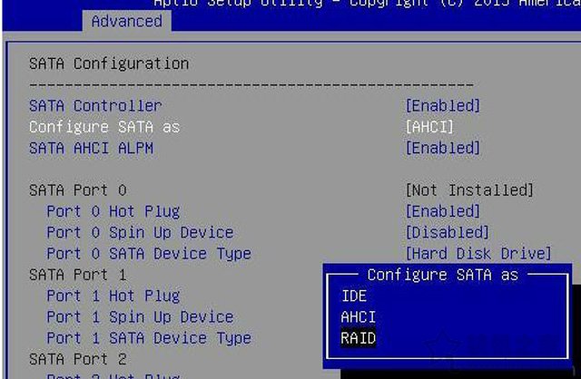 2、將configure SATA as的選項修改為“RAID”,如下圖所示。