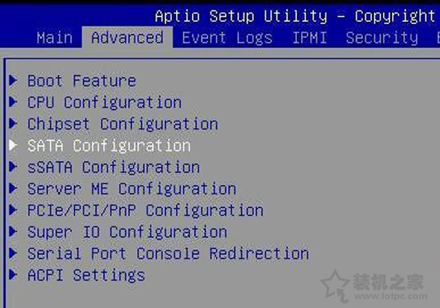 1、首先將SATA模式改成RAID模式;服務器電腦開機之后,我們反復按下“DEL”鍵,進入主板BIOS界面中,切換至“Advanced”,如下圖所示。