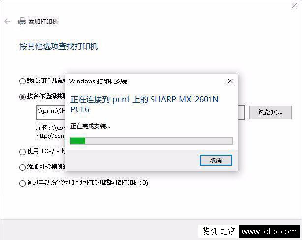5、我們按照正常添加網(wǎng)絡(luò)打印機(jī)的步驟來添加打印機(jī)。