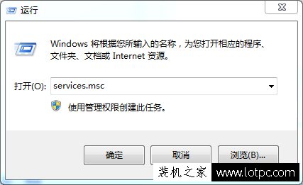 以Win7為例,首先我們在鍵盤上同時按下“Win+R”打開運行,在運行輸入框中輸入“services.msc”并回車打開服務(wù);