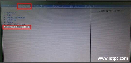 1.電腦開機之后按下“Del”鍵進入bios設置界面,接著選擇“Config”選項,移動光標再選擇“Serial ATA(SATA)”按回車確定。
