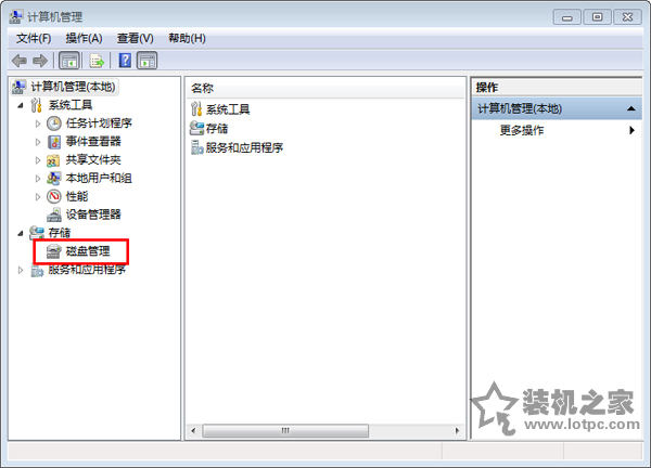 點(diǎn)擊左側(cè)欄存儲(chǔ)--》磁盤管理,這時(shí)就進(jìn)入了磁盤管理的界面了,如下圖所示: