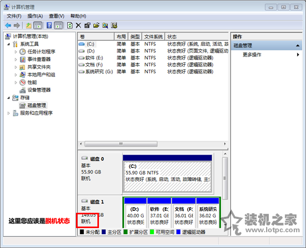 由于小編磁盤為正在使用情況,因此聯(lián)機(jī)不顯示,希望以上圖文教程能夠幫助大家解決所在問題。