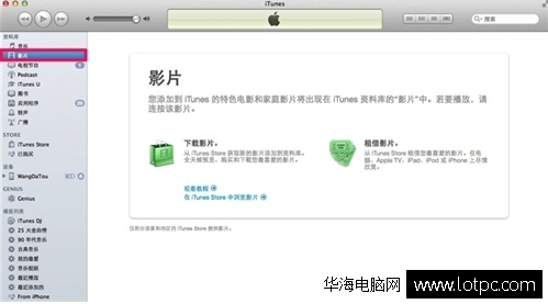 首先把iphone手機連接到你的電腦,然后再iTunes軟件左側列表里點擊影片。
