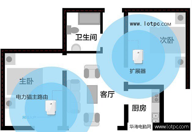 現在對于電力貓是什么想必大家都清楚了吧?簡單點說,電力貓一套主要有兩只,一個是路由,一個是擴展器,而且兩者都具備WiFi的功能。這兩者之間也都是通過電線來進行傳輸的,不需要借助網線。只要把主路由器設置上網,那么就可以與擴展器來配對連接,就可以把擴展器插入到其他的房間。實現完美多區域無線覆蓋,并且主路由可以配對多個擴展器。