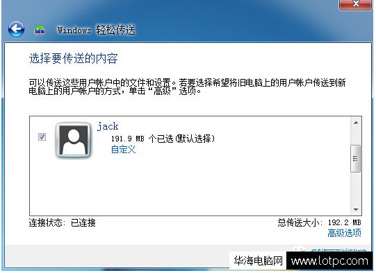 我們只要輸入剛才獲得的密碼,點擊下一步,新電腦就會彈出對話框,請你選擇需要傳輸的帳戶,內容,勾選你想傳送的內容,點擊傳輸,“搬家”就正式開工啦!