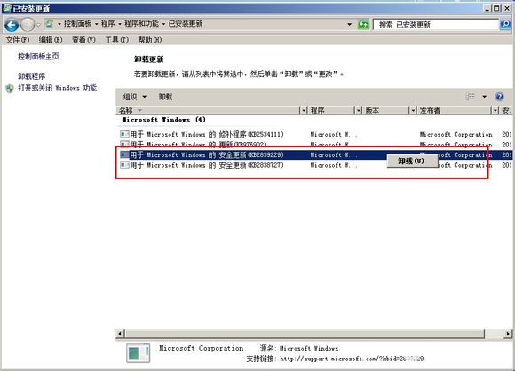 5:分別找到這兩個補丁右鍵點卸載然后重啟電腦即可恢復。