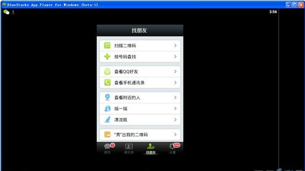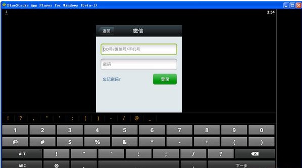 我們打開安卓模擬器(BlueStacks) Beta-1軟件后,安裝剛剛下載的微信.apk的應用,然后我們打開安裝好的微信,先登錄下界面,非常爽吧。