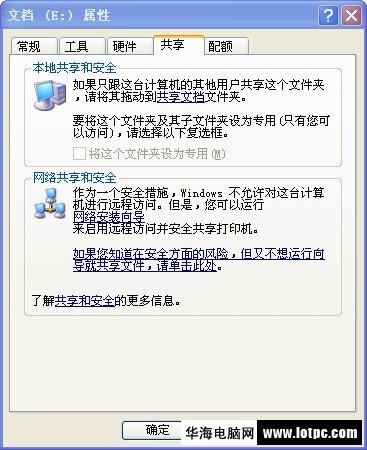 首先我們設置A文件服務器需要共享的文件夾或磁盤,我們拿E盤共享為例。打開“我的電腦”,在E磁盤右擊選擇“共享和安全[H]”,我們看到一下界面: