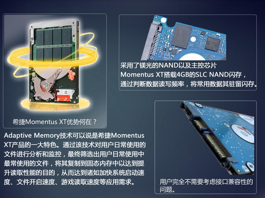 混合硬盤和傳統機械硬盤對比,大幅提高了性能,但是重要的是成本沒有提高太多。支持“WindowsReadyDrive”技術。 但是現在只有希捷和三星等混合硬盤上市。 與固態硬盤的差異:混合硬盤與固態硬盤雖然同樣是利用閃存來提高讀寫性能,不過使用環境的要求各不相同。前者必須配合Windows Vista或者 Windows 7操作系統的ReadyDrive功能才能夠發揮效用,如果您在xp或者2000或者2003系統只能當做普通硬盤來使用。但是固態硬盤ssd就沒有這種局限性。固態硬盤是利用閃存來打造大容量的硬盤,只要主板兼容,其實利用現在人們最愛的經典XP系統,也可獲得性能上的大大提升。
