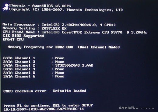 CMOS check error-Defaults loaded 自檢錯誤提示