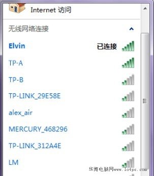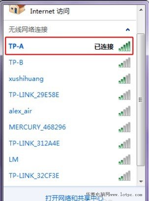 點擊任務欄右邊的無線圖標,會彈出“無線網絡連接”列表,其中就有剛建立的“TP-A”和“TP-B”: