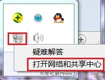 接著在右下角右擊任務欄的“網絡”,選擇“打開網絡和共享中心”。