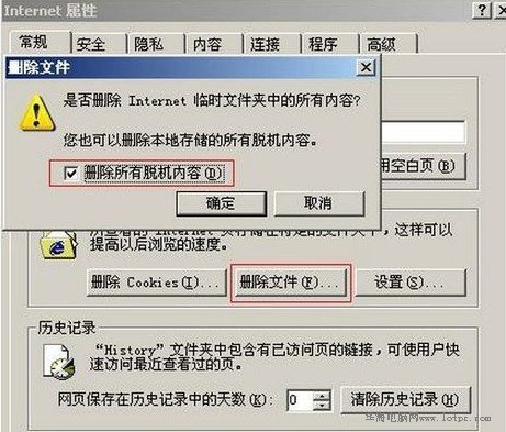 方法二:刪除IE緩存脫機內容(IE8版本以下的瀏覽器)