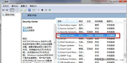 最簡單的方法是首先我們進入cmd命令行,如下圖所示:輸入services.msc進入系統服務,然后進入Security Center服務,查看該服務項,把該服務項設置為禁用。